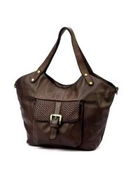 Dámska kožená kabelka VS 019 Shopperbag Brown so zlatým kovaním