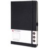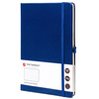 - Tmavomodrý zošit s potlačou v riadkoch. Vďaka minimalistickej, elegantnej tvrdej väzbe je ideálny do kancelárie aj na univerzitu. Vybavený elastickým uzáverom, ktorý zabraňuje náhodnému otvoreniu poznámok. Formát A5.