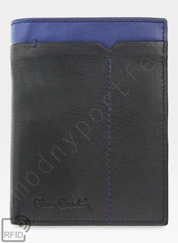 Portfel Męski Pierre Cardin Skórzany Klasyczny Czarny Tilak26 330 RFID Czarny + Niebieski