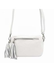 Biela kožená taška cez rameno Pierre Cardin FRZ 1652 DOLLARO s reťazovým popruhom a ozdobným strapcom